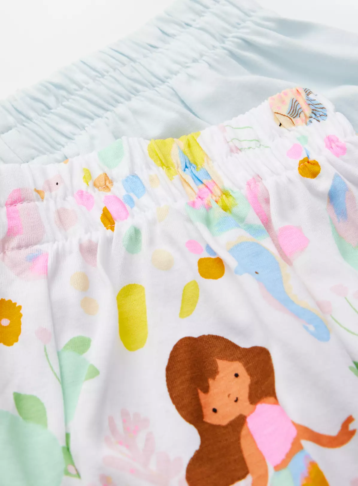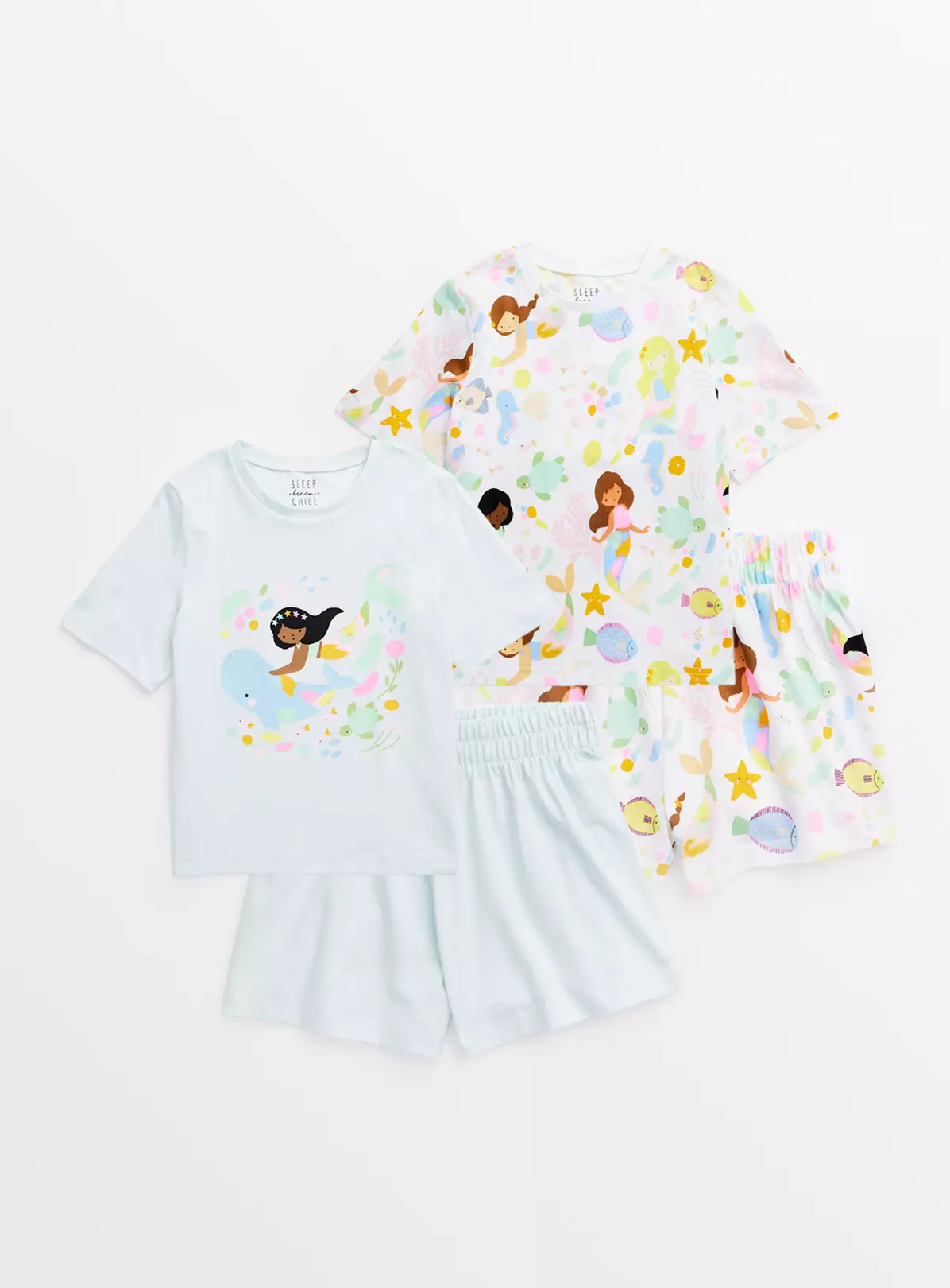Boost their mini nightwear collection with our shortie pyjama set. Super cute and super comfy, the pack comes with a mermaid print throughout. Made from pure cotton for extra softness against the skin.