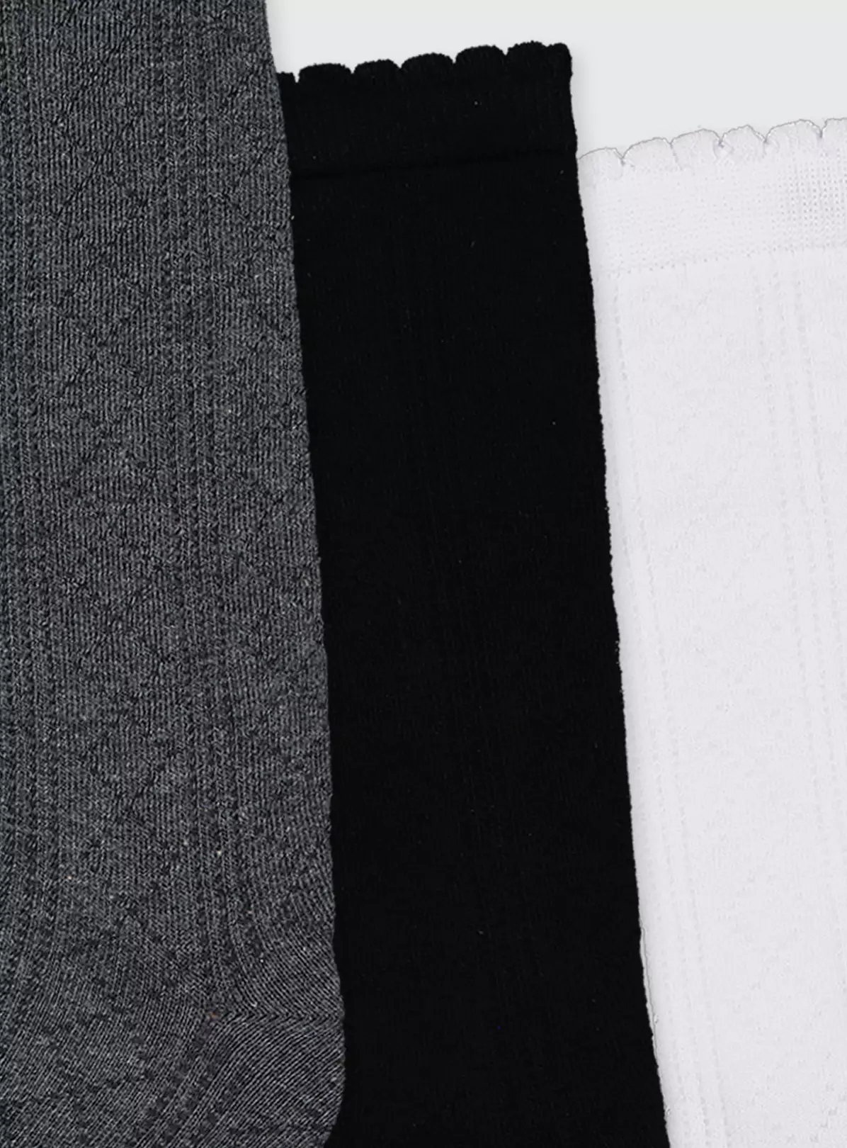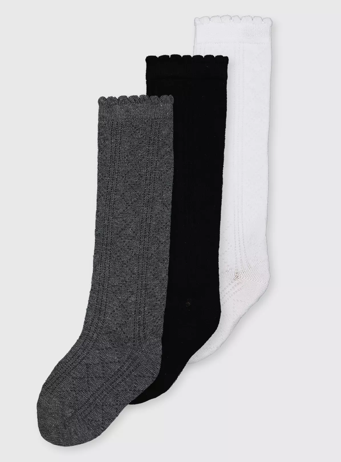 Boost their everyday essentials with these cotton-rich socks, crafted with Bi-ome antibacterial finish. Each pair is crafted in a knee high diamond pointelle design with a scalloped ankle finish.