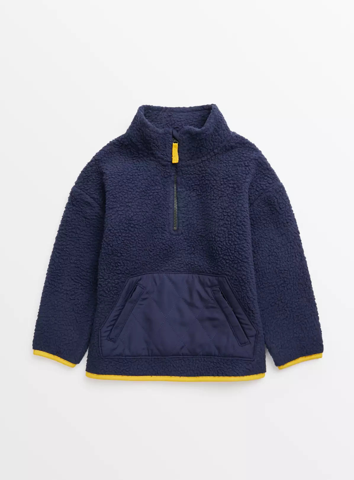 The ultimate winter layer for your little adventurer. Our navy borg fleece will keep them cosy when they’re out and about. With a handy half-zip to the neck and a cute kangaroo pouch. Team with cargos for a cool outfit!
