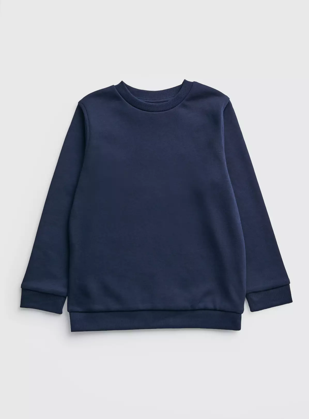 Check out this longline navy sweatshirt, perfect for action packed autumn weekends. Made in a soft, cotton-rich blend, it has a classic crew neck and long sleeves. Team with denim to complete their mini look.