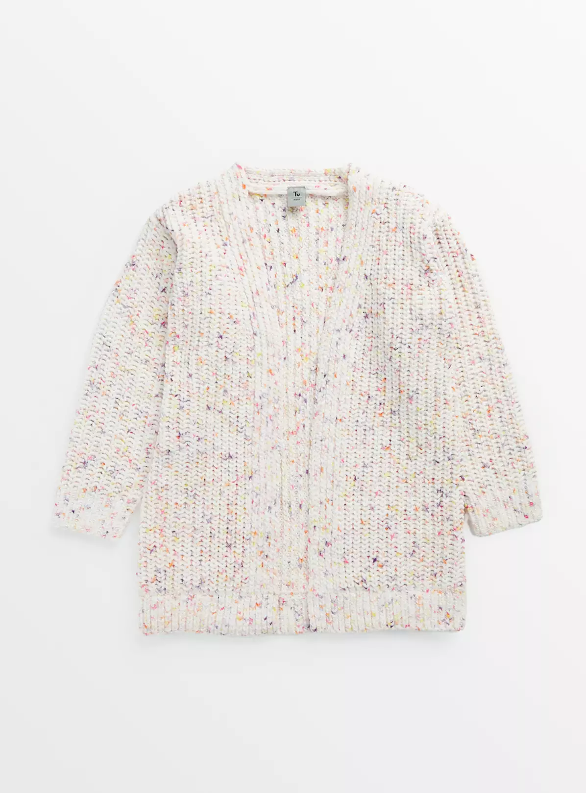 Our cute neppy cardigan will go with so many of their outfits. With a lovely pastel fleck, it comes in a chunky yarn with a v-neck and long sleeves. Perfect for keeping them cosy in the chilly weather.
