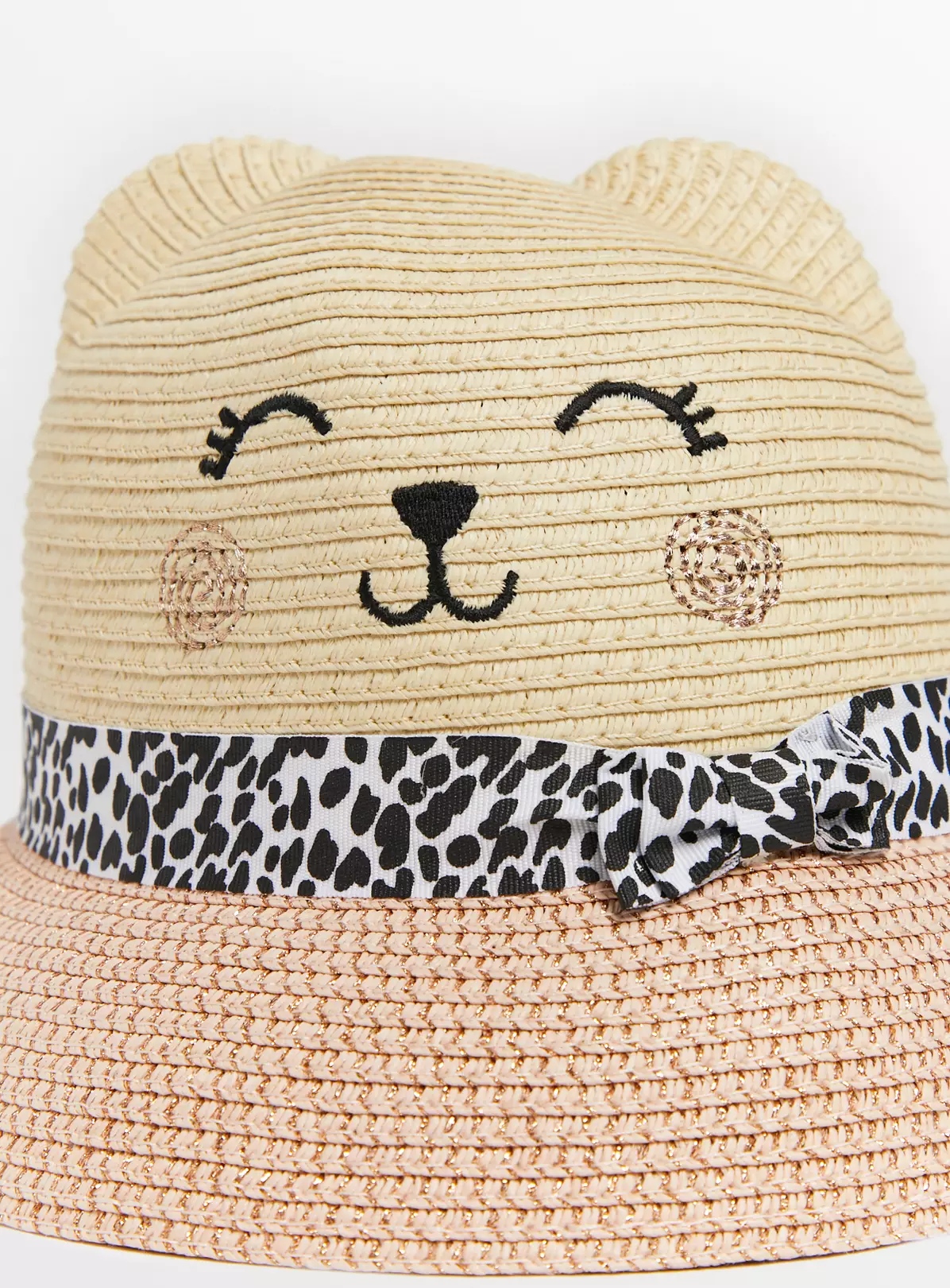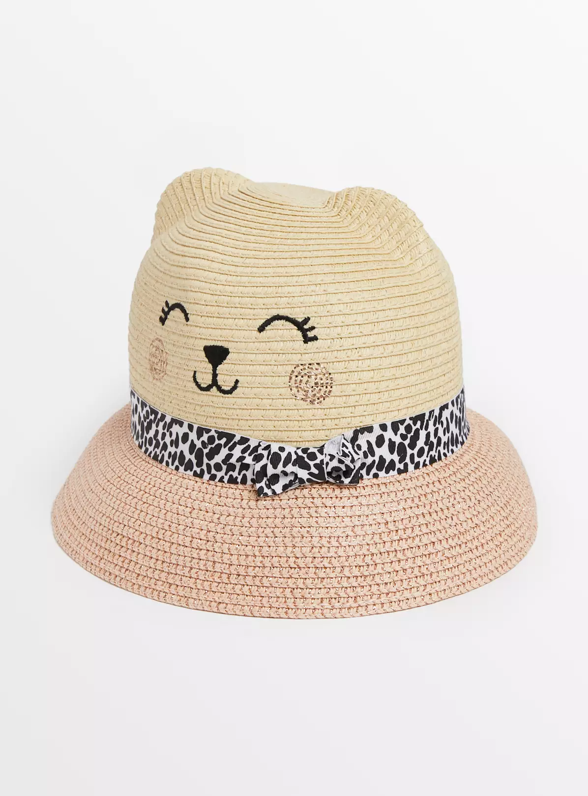 Keep your little one sun safe in style with our adorable novelty straw sun hat! Elevated by a cute cat design, it has a leopard print band. Perfect for their summer holidays!