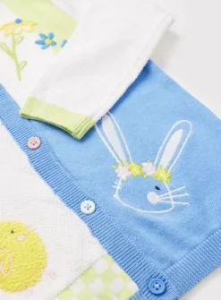 Keep them cute and comfy this spring in our sweet novelty chick cardigan. It comes in yellow and blue, its knitted and has a full value fastening. Pair with their favourite jeans or over a simple jersey dress!
