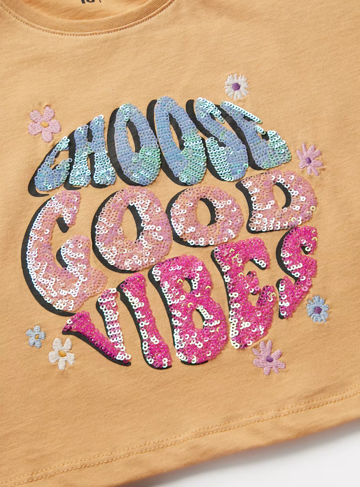 Orange Choose Good Vibes Cropped T-Shirt 7 Years