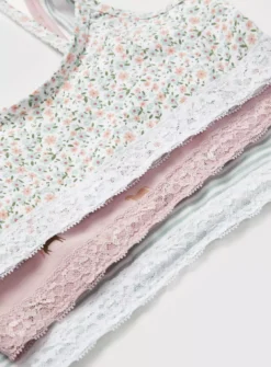 Stock up on their everyday essentials with our 3 pack of ditsy printed crop tops! With pretty lace trims and in comfy-cotton rich blends, our pack includes 1 ditsy print, 1 striped and 1 pink horse print crop top.