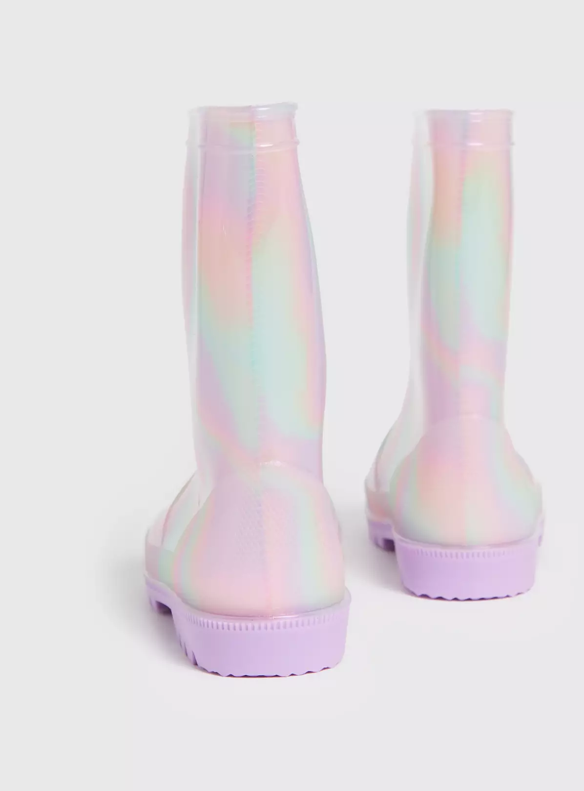 Treat your little one to these fabulous pearlescent wellies. With a soft textured lining and a non-slip chunky purple sole. Whether they’re puddle stomping, muddy paddock walking, or kicking up sand on the beach, these shimmering beauties will have them sorted.