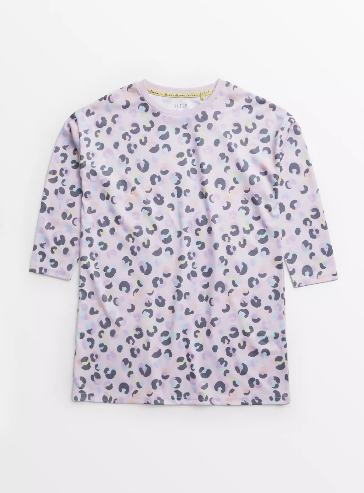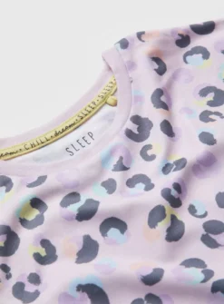 Your little one will have sweet dreams in this pretty pink nightie. With a colourful, all-over leopard print, comfy crew neck and short sleeves. Easy to throw on in the warmer months for a fuss free bedtime. Made in a soft touch, recycled polyester.