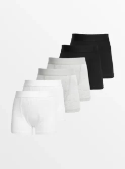 Crafted from cotton with added stretch, our mono trunks are an essential addition to their collection. This handy pack of 5 includes 2 black, 2 grey and 1 white pair.