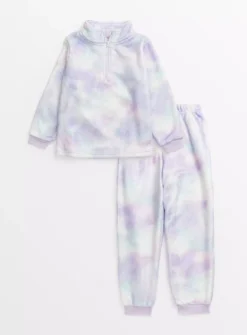 Our purple space dye pyjamas feature a super sparkly finish that your little one will love! Including 1 top in a quarter zip style and 1 pair of matching bottoms, they come in a soft fleeced fabric.