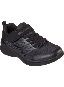Keep it cool with easy-wearing comfort in the Skechers Microspec – Texlor shoe. This slip-on trainer features an athletic mesh fabric and synthetic upper with stitching and overlay accents.