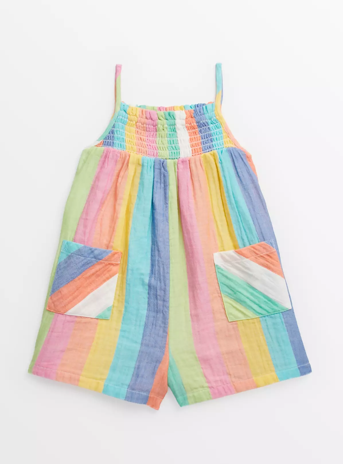 A super fun playsuit perfect for days out! In a sassy rainbow design with oversized pockets and a shirred neckline, it’s bound to become their summer go-to.