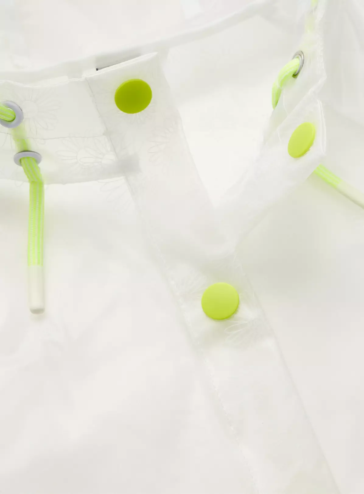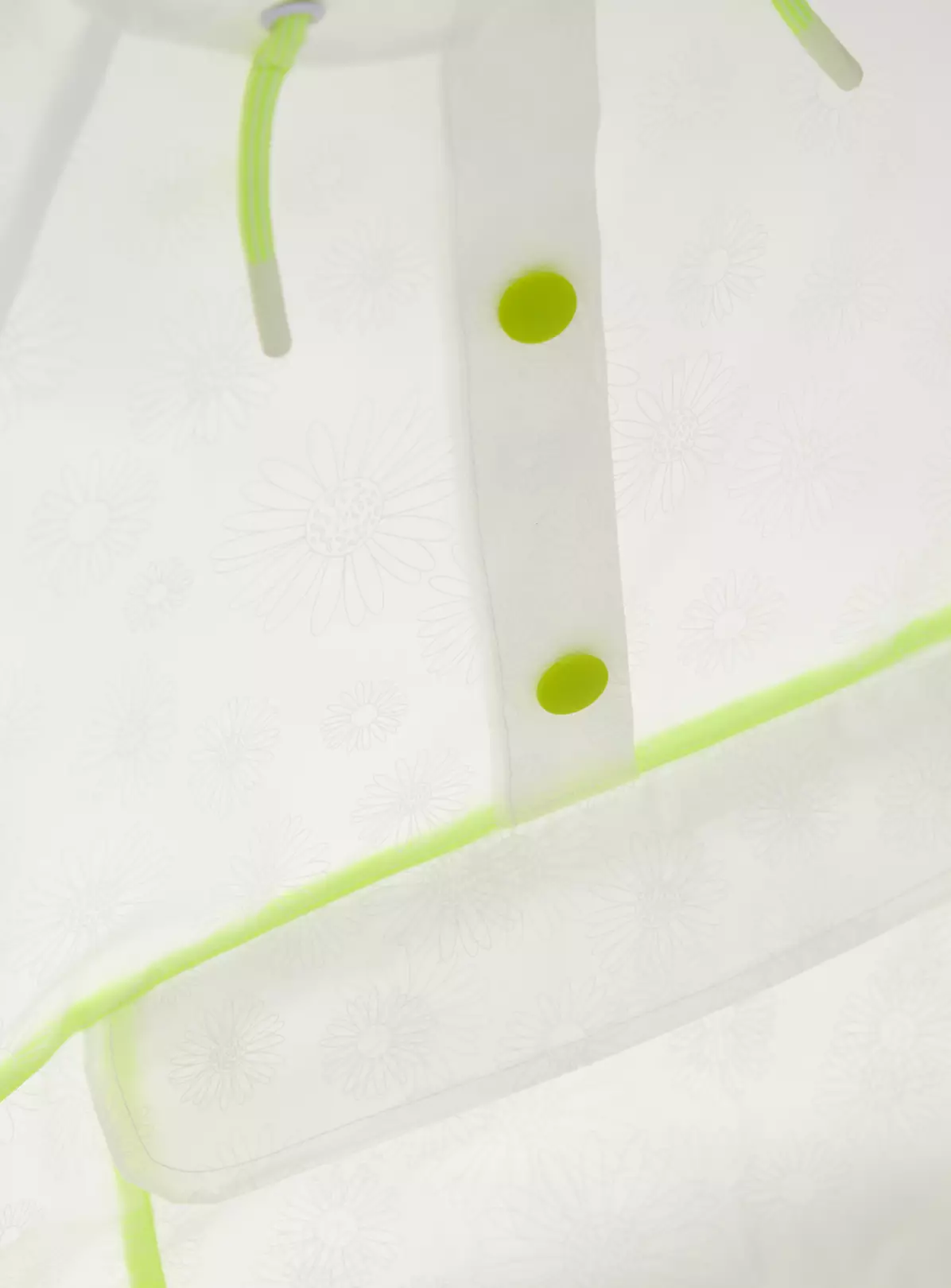 An ideal option for wet weather days, our mac coat comes in a transparent design with a floral print. Featuring a handy hood, it features neon contrast trims for a fun look. In an overhead style, it’s the perfect addition to their spring wardrobe!