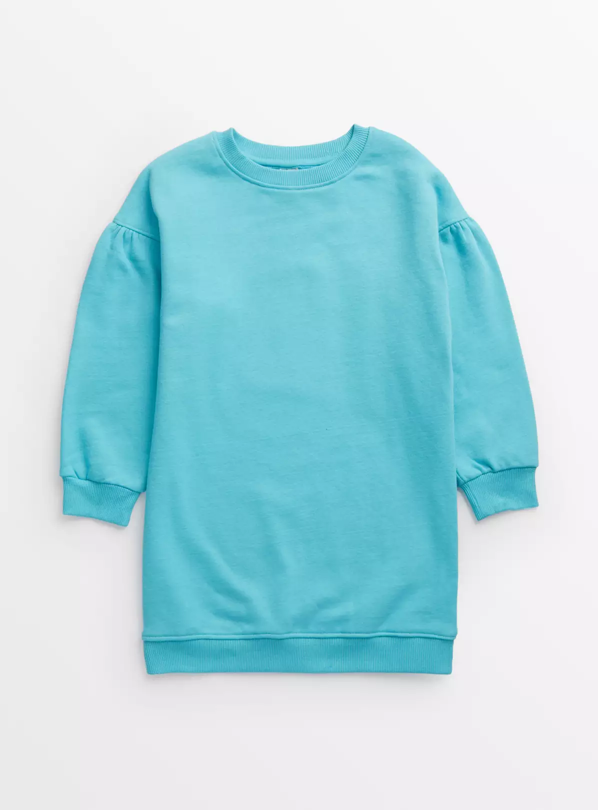 They’ll be cute and comfy in our sweatshirt dress. In a cool turquoise shade, it features a crew neckline and has long sleeves. Perfect for wearing with tights and boots this season!