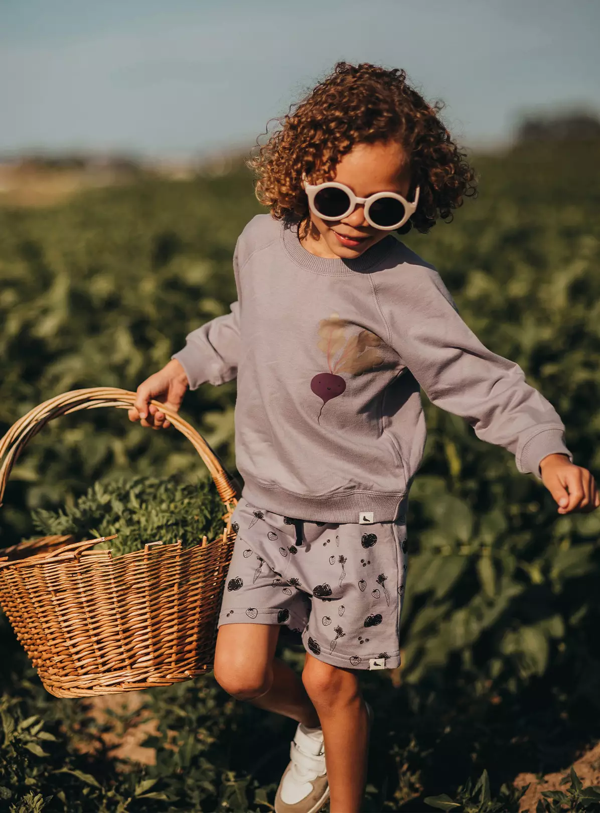 Our loose-fitting kids shorts featuring our Fruity Print are ideal for summer season styling. Made from our super-soft 100% GOTS organic cotton jersey sweat, these are the perfect everyday shorts for your little ones to play & move around in. Soft elasticated waist ensures easy-peasy dressing and a snuggly fit, too.