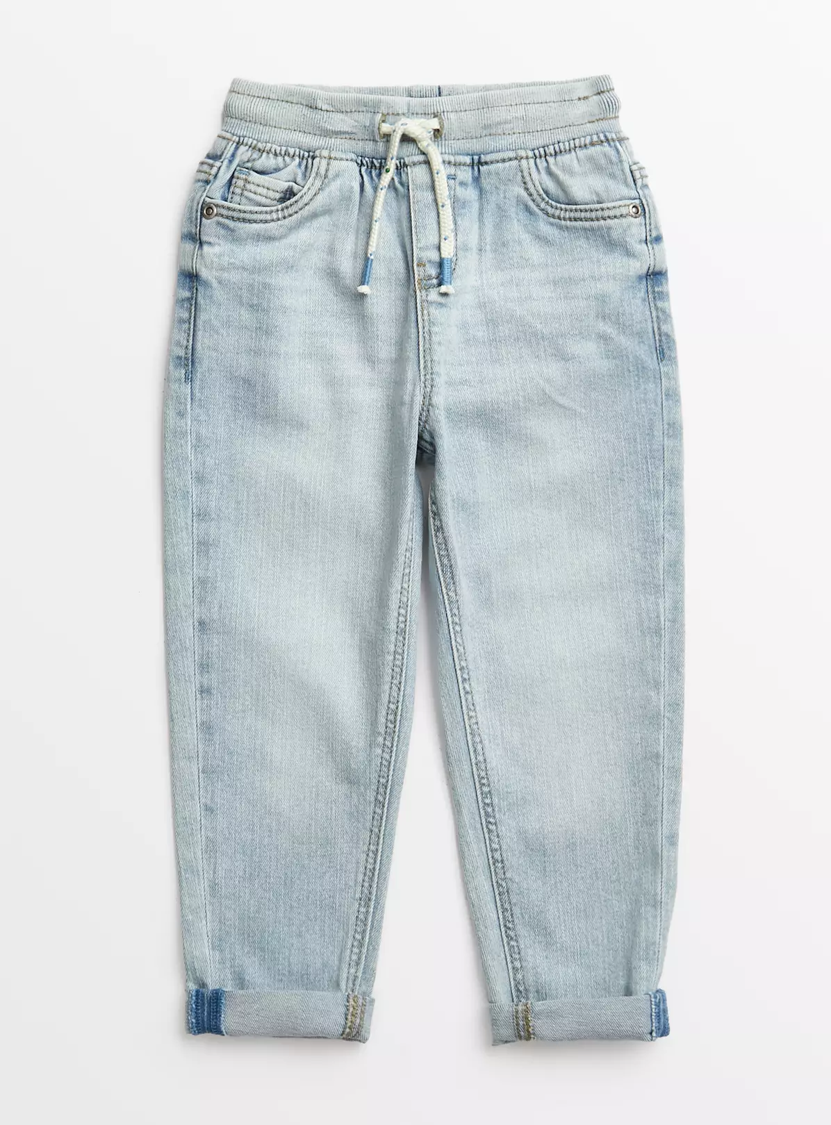 Your tiny trendsetter will look the business in these comfy light blue washed denim jeans. Made from a cotton rich blend with extra stretch and a pull on waist, turn up hems and plenty of attitude.