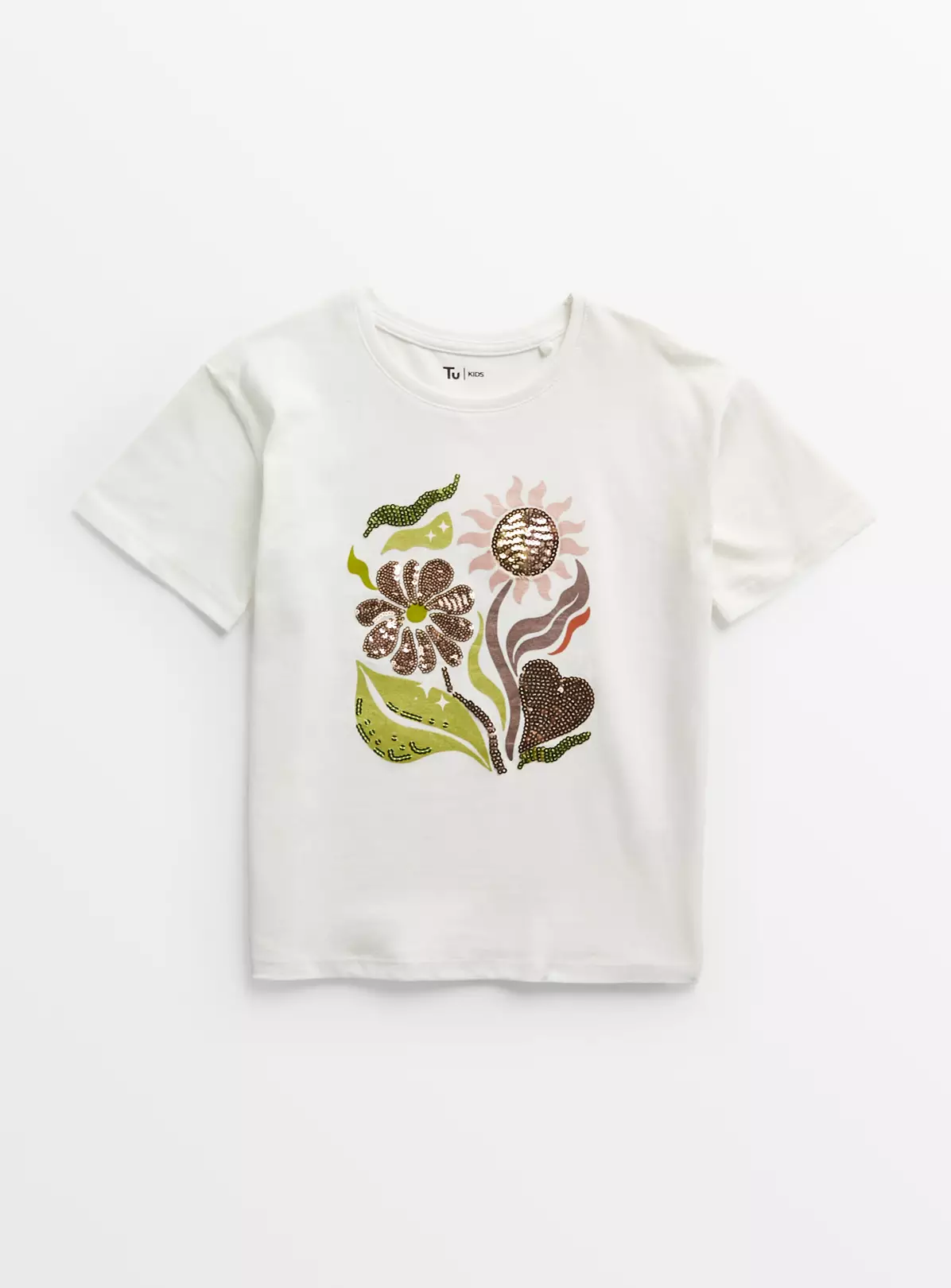 White Sequin Floral T-Shirt 12 Years -Hush Puppies Clothing Sale tuc143566466 Cream R Z001A 2