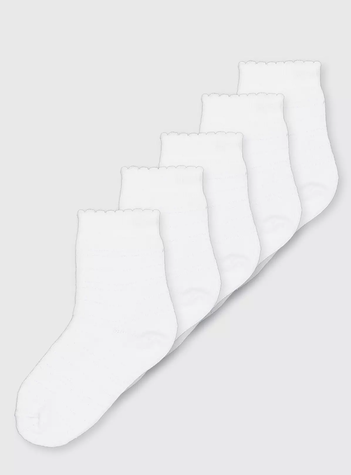 In classic white with sparkly stripes, these ankle socks with scallop trim are perfect for stocking up on their everyday essentials. Shop the full range for a variety of styles.