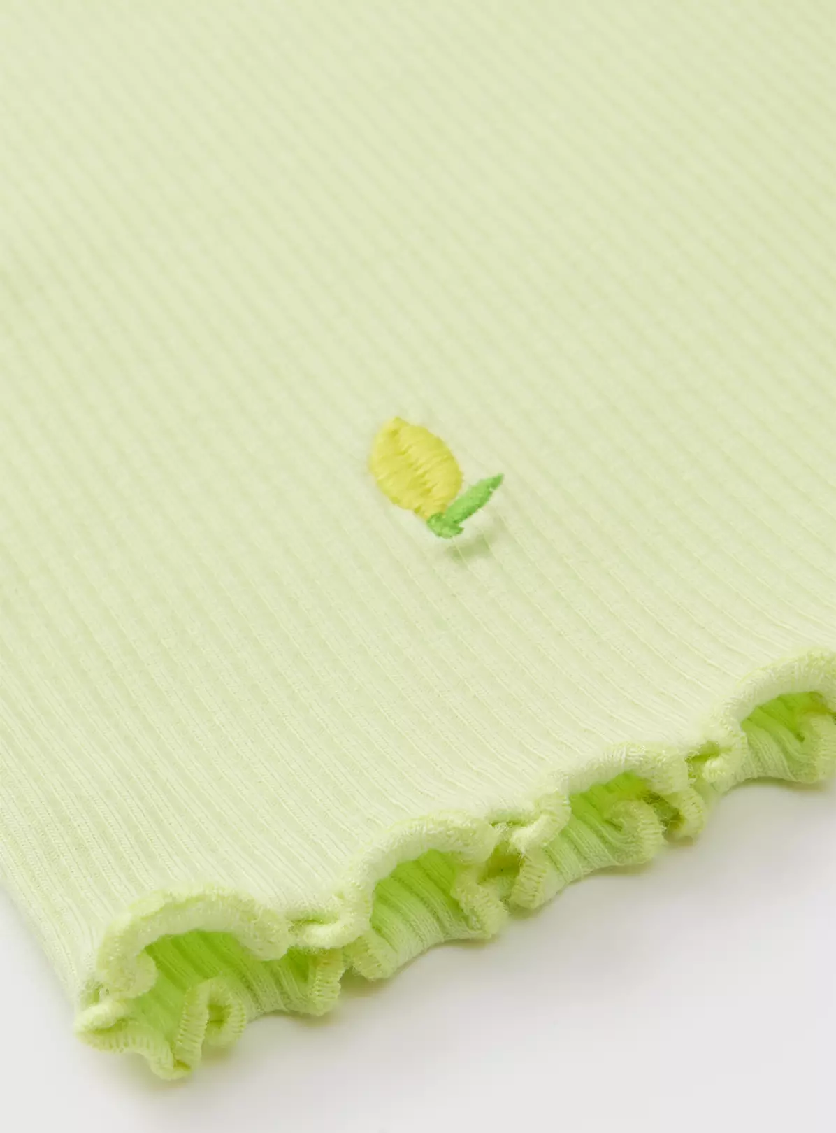 Our lovely yellow tee is perfect for their summer wardrobe. In a soft cotton rich design, it has a round neck, lettuce sleeves and super cute embroidered lemons on the front. Team with denim for the weekend.